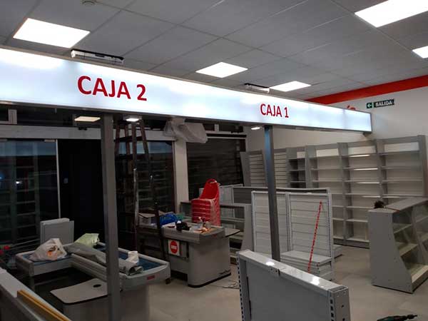 Cartel Backlight en fila de Cajas iluminado con tiras led