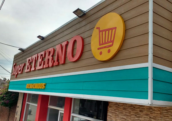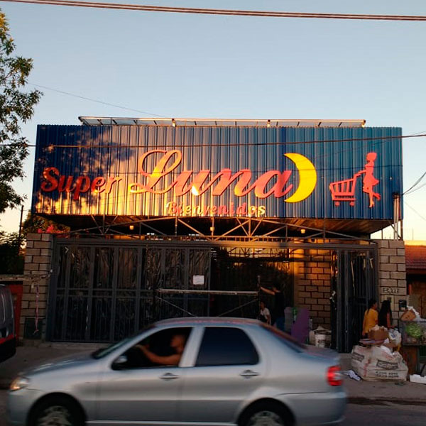 Marquesina de chapa trapezoidal con letras corpóreas