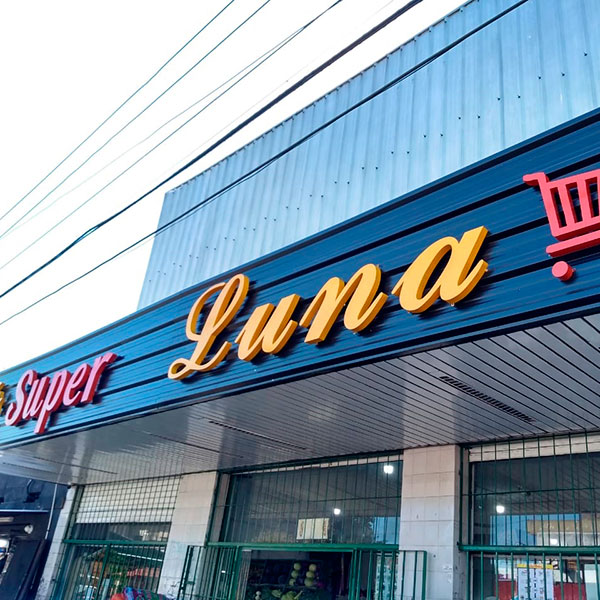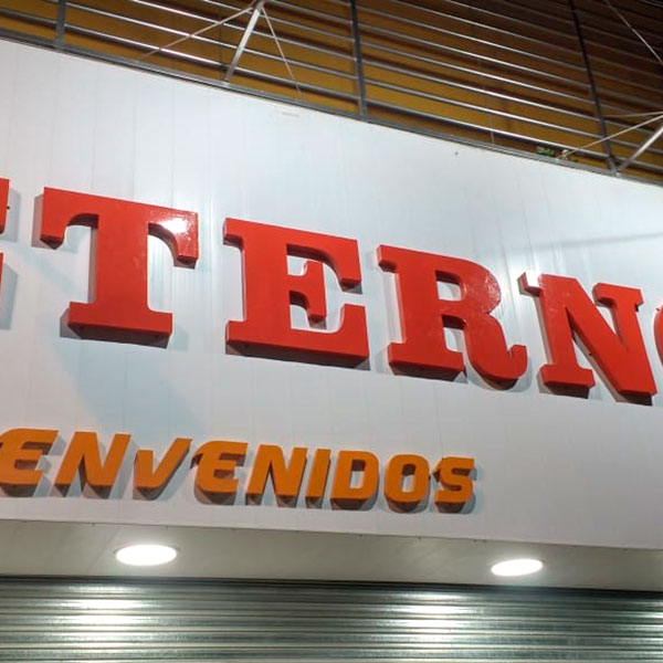 Marquesina con letras corpóreas