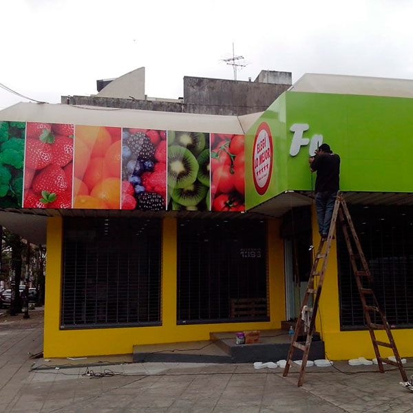 Marquesina de chapa ploteada con vinílo impreso