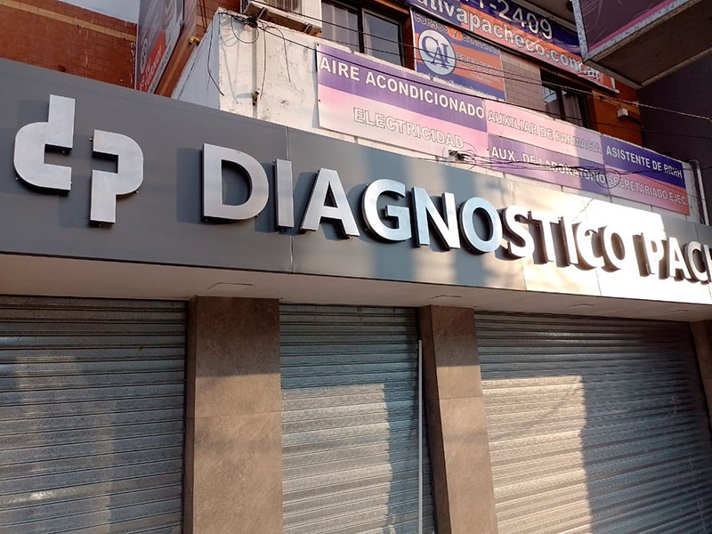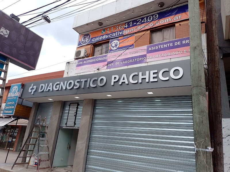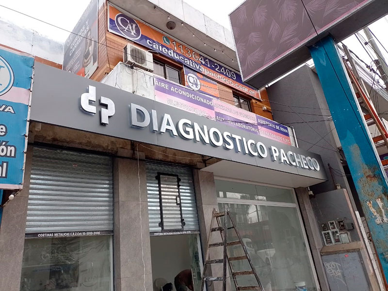 Marquesina frente de PVC con letras corpóreas de chapa