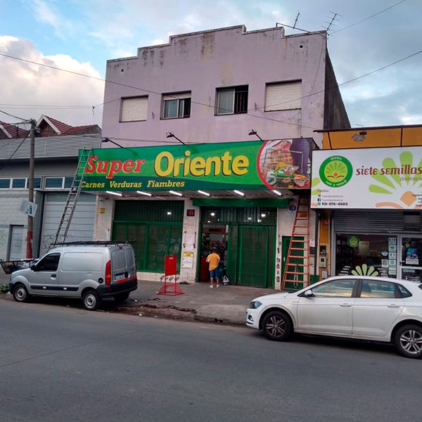 Marquesina con frente de lona impresa con luces led